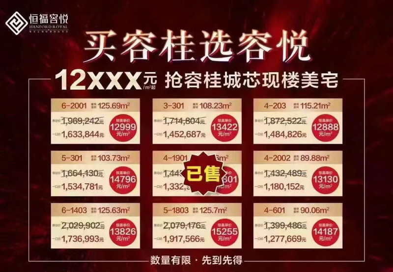 恒福容悦园推出5套精选特价单位,底至元/平方,先godao先得!全新六座推出:103m2轻奢阔绰三房,125m2轻贵典雅四房,面积:89-126m2奢尚3至4房,在线团购报名享受额外优惠!